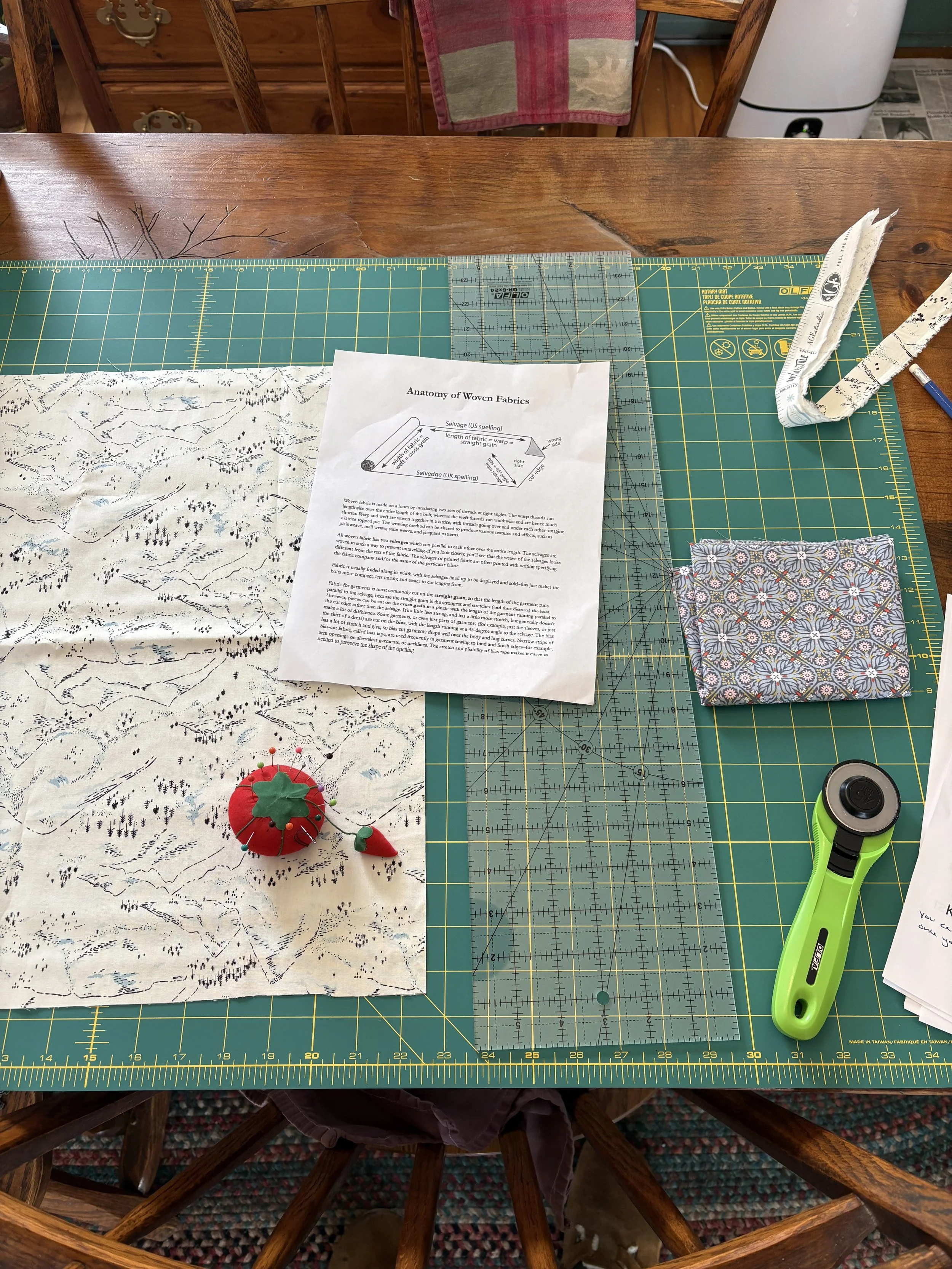 Learning all about selvedge, width of fabric, and correct measurements